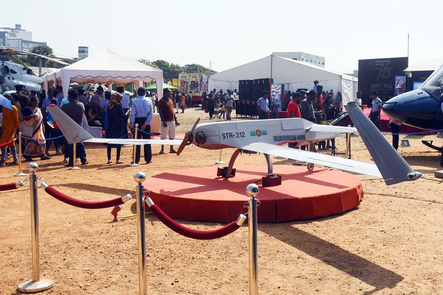 People visit the "Air Tattoo - 2024" technological and educational exhibition in Jaffna, Sri Lanka, on March 9, 2024. (Photo by Gayan Sameera/Xinhua)