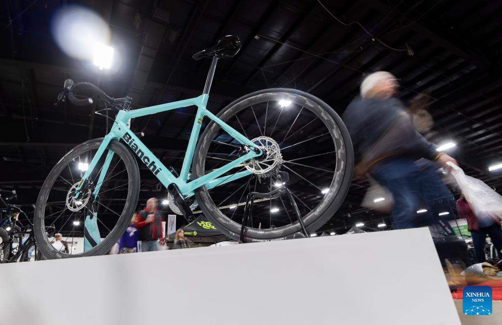 People visit the 2024 Toronto Bicycle Show and E-Bike Expo in Mississauga, the Greater Toronto Area, Canada, March 10, 2024. This annual event was held here from March 8 to 10, showcasing the latest products of more than 170 exhibitors. (Photo by Zou Zheng/Xinhua)