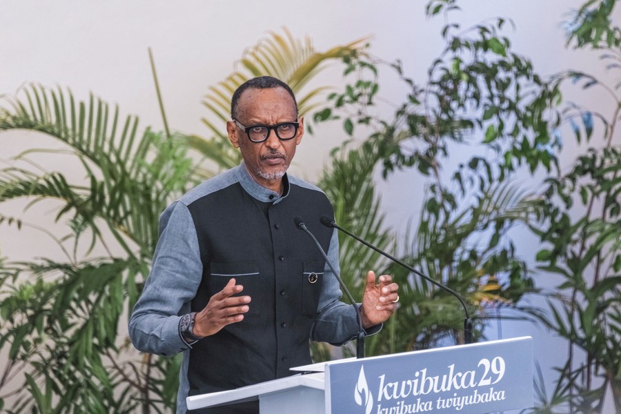Rwandan President Paul Kagame delivers a speech during the commemoration of the 29th anniversary of the 1994 genocide against Tutsis at the Kigali Genocide Memorial in Kigali, Rwanda, April 7, 2023. (Photo by Cyril Ndegeya/Xinhua)
