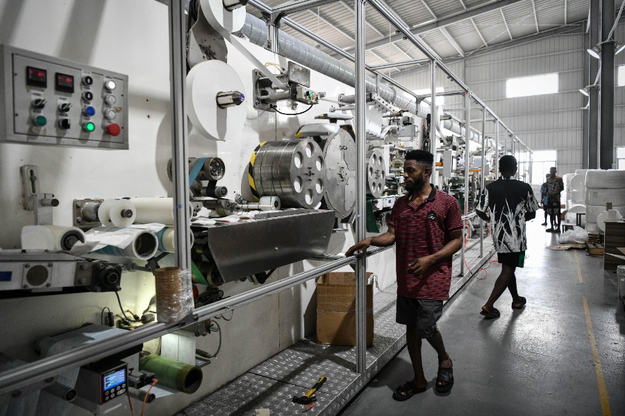 Employees operate at a workshop of a personal care product company in the Lekki Free Trade Zone in Lagos, Nigeria, March 1, 2024. (Xinhua/Han Xu)