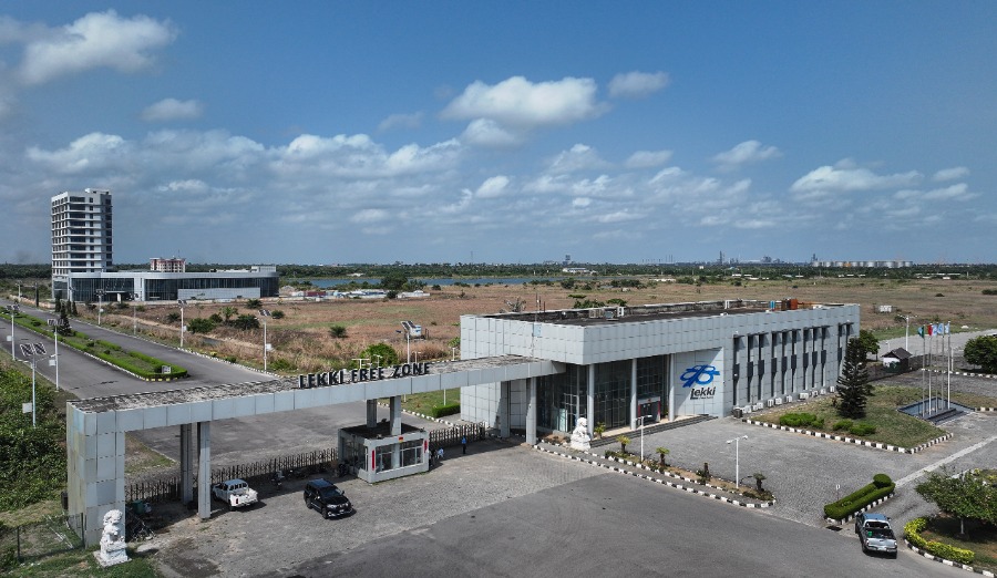 Aerial drone photo taken on March 1, 2024, shows the entrance to the Lekki Free Trade Zone in Lagos, Nigeria. (Xinhua/Han Xu)