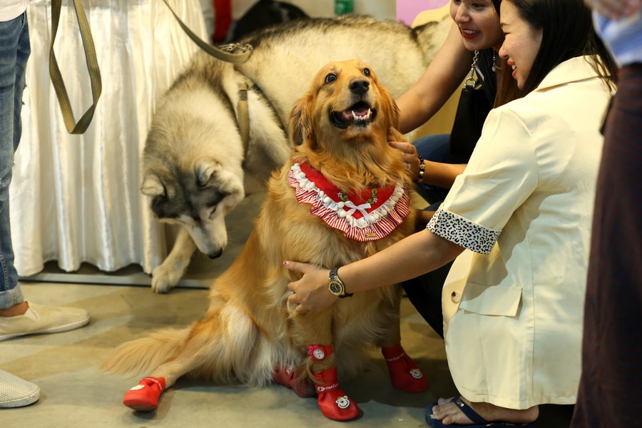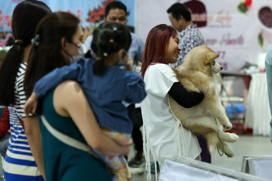 People visit a pet expo in Yangon, Myanmar, March 10, 2024. (Photo by Myo Kyaw Soe/Xinhua)