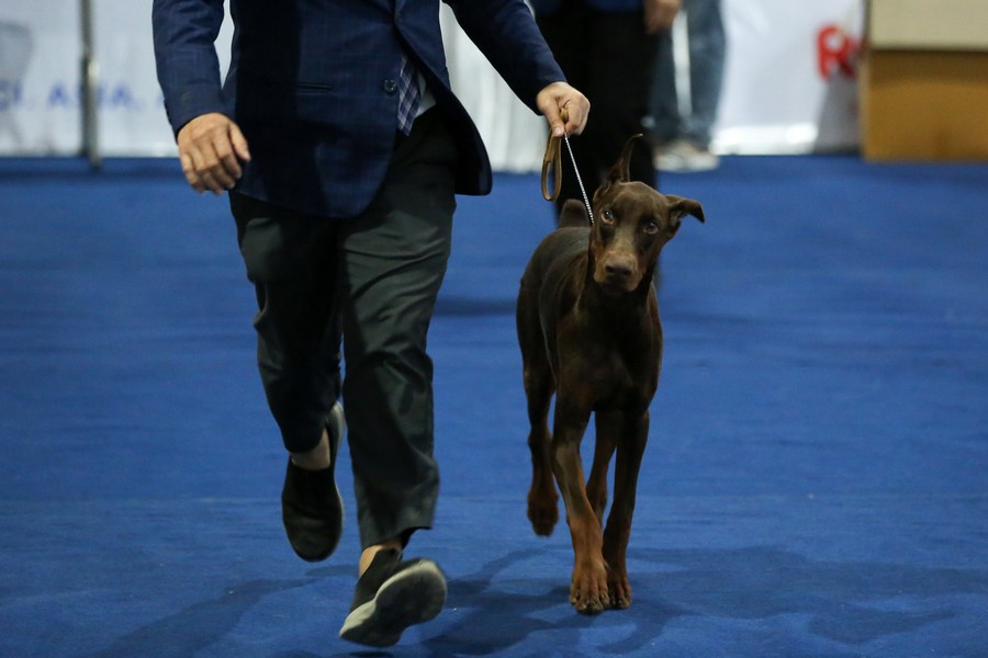 Pet dogs compete at a pet expo in Yangon, Myanmar, March 10, 2024. (Photo by Myo Kyaw Soe/Xinhua)