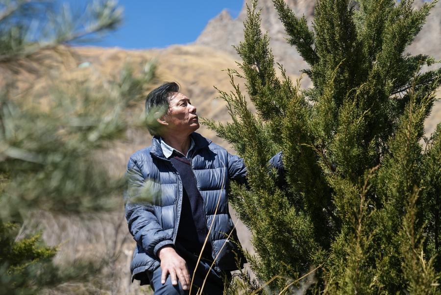 "I expect the saplings all over the mountain to thrive, and it is my dream to let future generations have a verdant mountain," Rigzin said, who has already seen Xiga Mountain as his home.