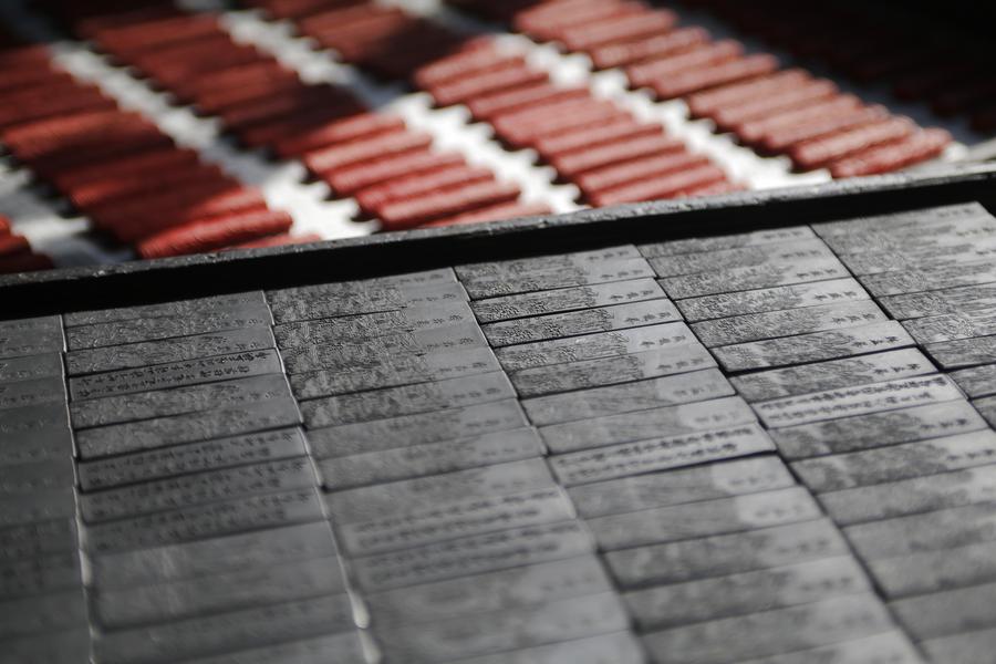 HEFEI, March 13 (Xinhua) -- Featuring motifs ranging from lunar craters to Nintendo's retro games and Bruce Lee's iconic stance, the millennium-old Hui ink stick, an essential item in Chinese traditional painting and calligraphy, shines under the live-streaming spotlight, transcending antiquated perceptions and shattering the stereotype of being outdated.
