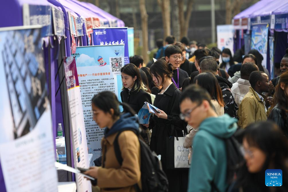 Students attend a job fair in Tsinghua University in Beijing, capital of China, March 15, 2024.