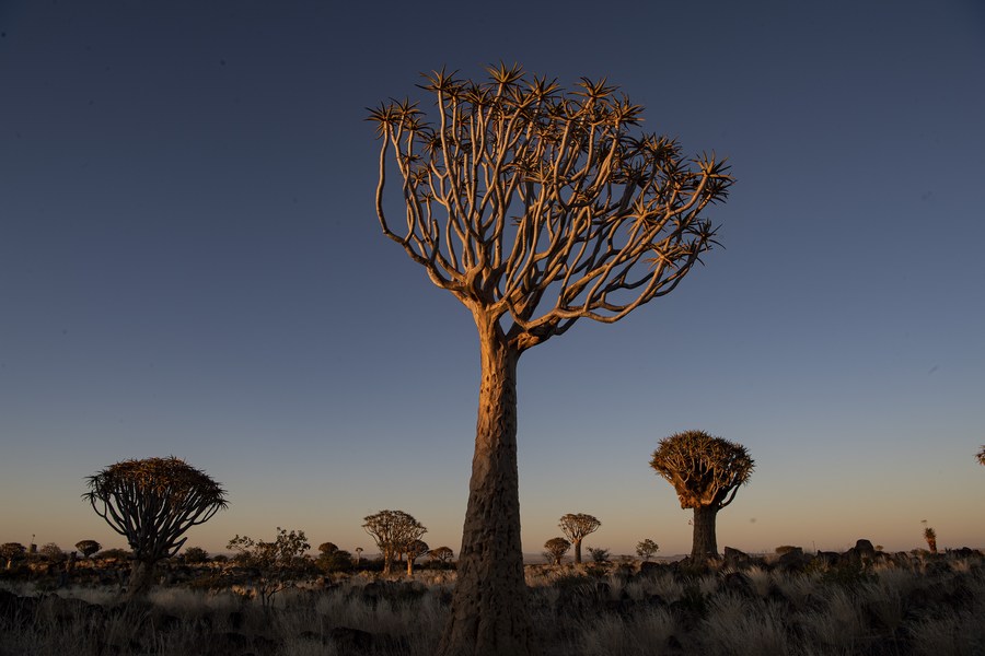 Photo taken on April 30, 2022 shows a quiver tree in Keetmanshoop, southern Namibia. (Xinhua/Chen Cheng)