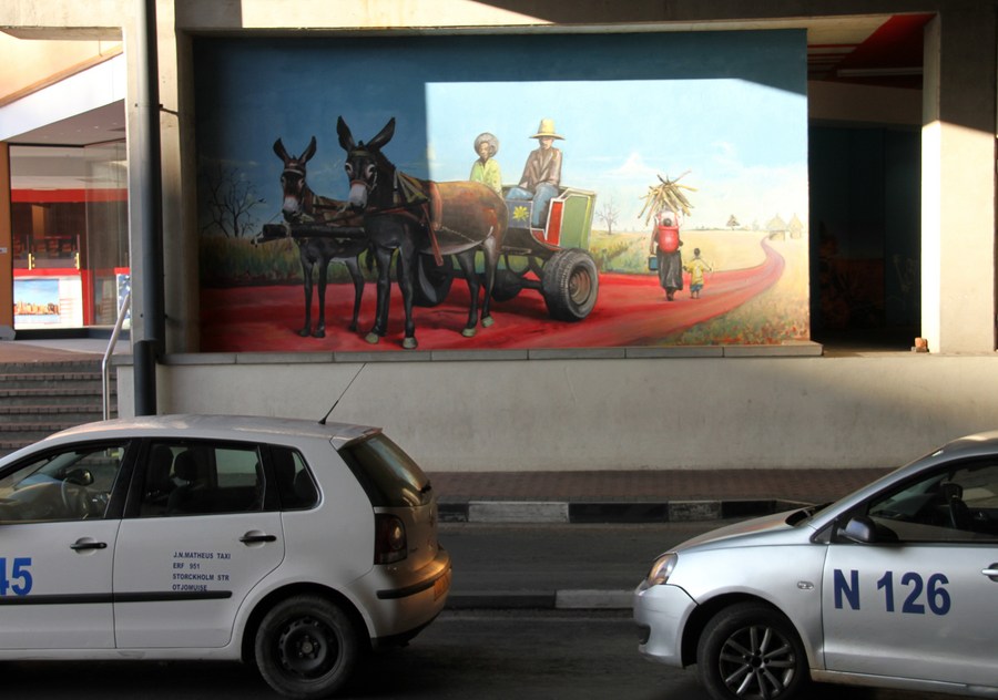 Photo taken on June 21, 2022 shows murals painted by Namibian visual artists in Windhoek, Namibia. (Photo by Musa C Kaseke/Xinhua)