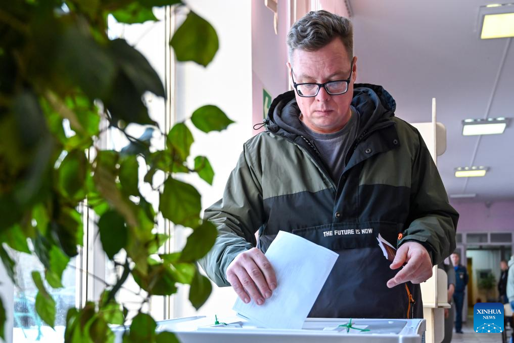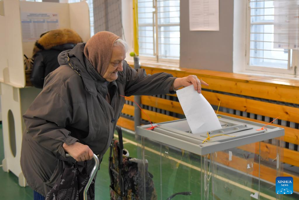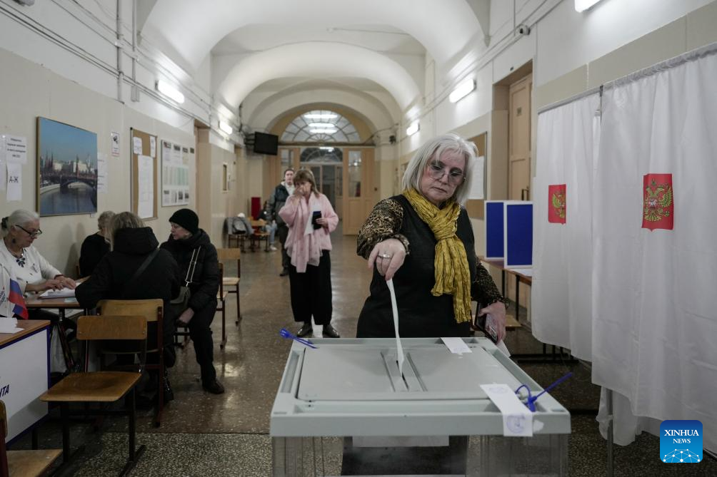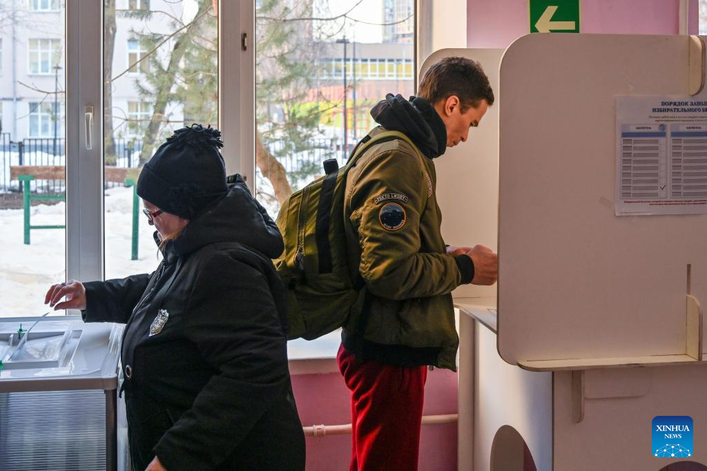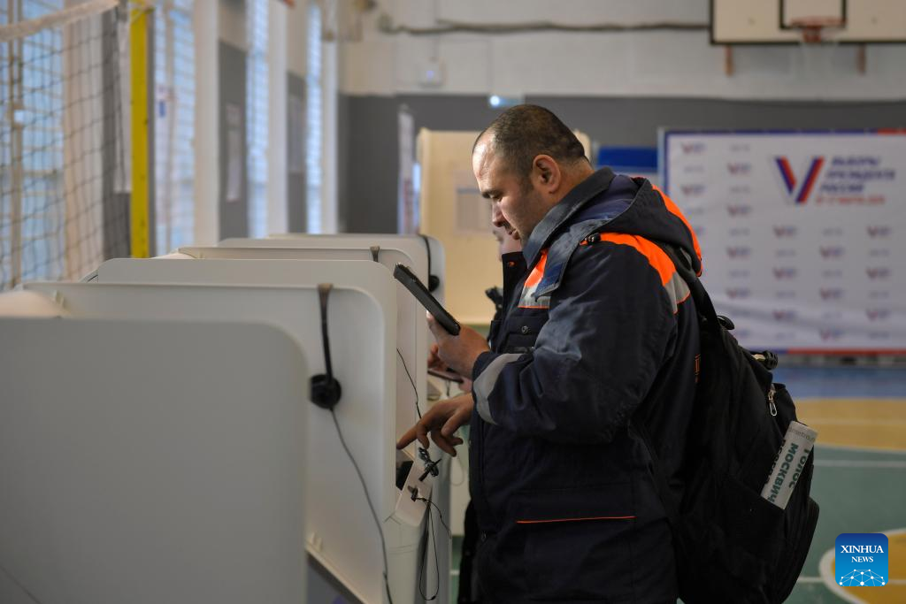 A man casts his vote in Moscow, Russia, March 15, 2024. Russia's presidential election begins Friday and will continue until Sunday. (Xinhua/Cao Yang)