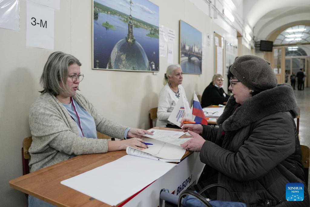 Four candidates are registered for the election, namely incumbent Russian President Vladimir Putin, leader of the Liberal Democratic Party Leonid Slutsky, Vladislav Davankov from Russia's New People Party, and Nikolai Kharitonov, the Russian Communist Party's candidate. (Xinhua/An Xiaomeng)