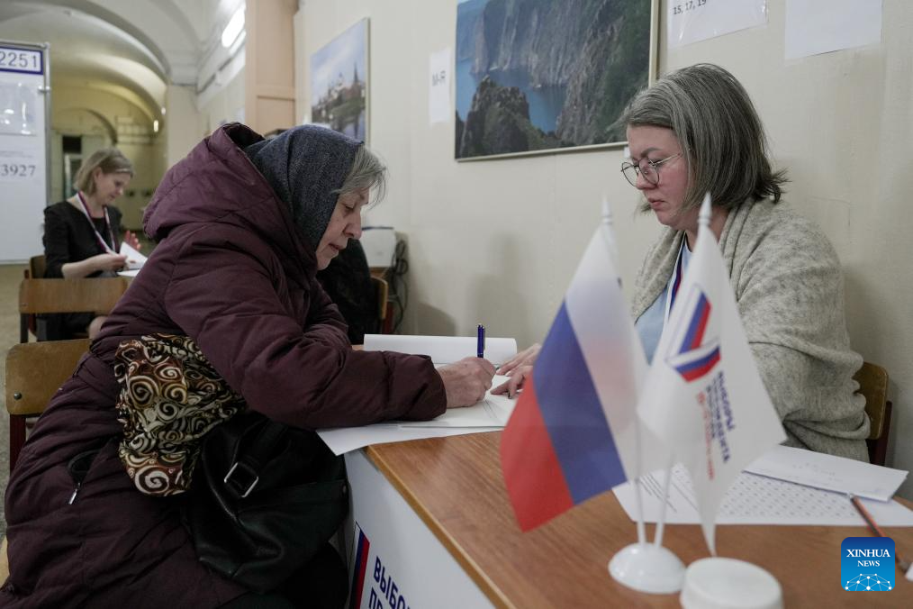 People register to vote in Moscow, Russia, March 15, 2024. Russia's presidential election begins Friday and will continue until Sunday. (Xinhua/Cao Yang)