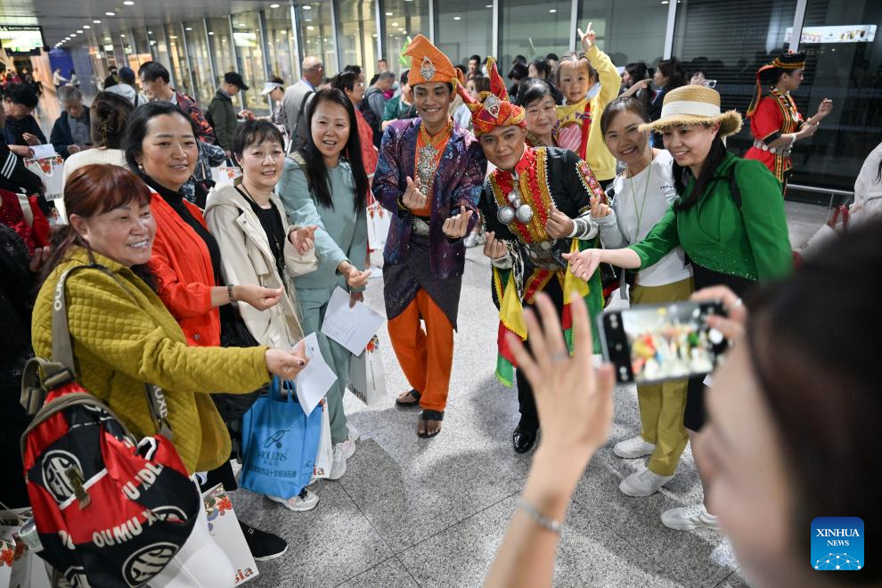 Passengers on board flight MU9629 arriving at Kuala Lumpur International Airport from Kunming, southwest China, were welcomed by Manoharan Periasamy, director-general of Tourism Malaysia, an agency under the Malaysian Ministry of Tourism, Arts and Culture.