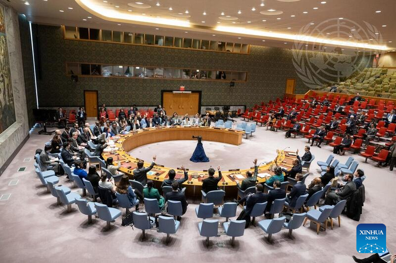 Representatives vote on a draft resolution during a UN Security Council meeting at the UN headquarters in New York, on March 15, 2024. The Security Council on Friday adopted a resolution to renew the mandate of the UN Assistance Mission in Afghanistan (UNAMA) for a year. (Eskinder Debebe/UN Photo/Handout via Xinhua)