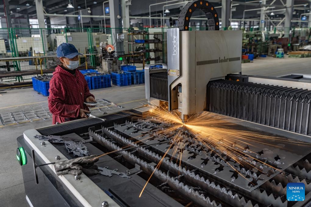 An employee works on a production line of Chongqing Hawe New Energy Co., Ltd. in Bishan District of Chongqing, southwest China, March 15, 2024. The products of the company will be transported to Europe via China-Europe freight train service. Benefiting from the increase of train trips and the launch of new freight train routes, including two direct rail routes to Spain and Türkiye, the city of Chongqing has seen increase in its export via China-Europe freight train service this year.