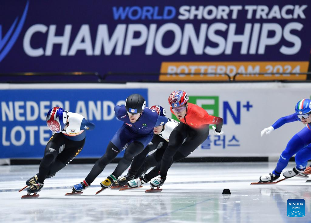 Sun Long (3rd L) of China competes during the men's 1500m final A at the ISU World Short Track Speed Skating Championships 2024 in Rotterdam, the Netherlands, March 16, 2024. (Xinhua/Lian Yi)