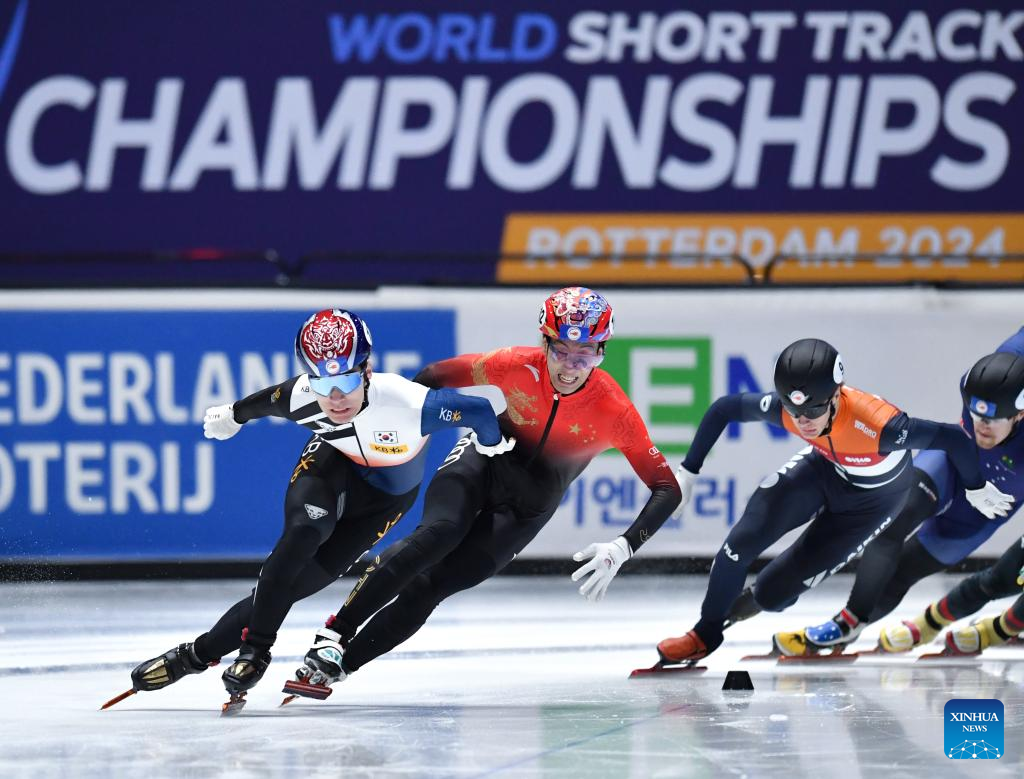 Sun Long of China competes during the men's 1500m final A at the ISU World Short Track Speed Skating Championships 2024 in Rotterdam, the Netherlands, March 16, 2024. (Xinhua/Lian Yi)