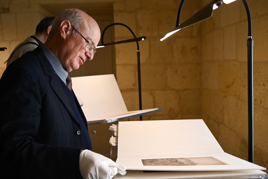 A man views an artwork at the China Pavilion of the Malta Biennale in Valletta, Malta, on March 15, 2024. (Photo by Jonathan Borg/Xinhua)