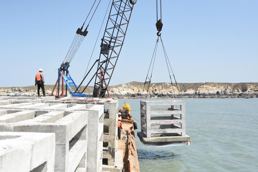 Multiple holes on the surface of such cubes allow fish to easily burrow into these artificial reefs, making them suitable as places to live, breed, and hide from potential predators. These efforts are about more than just protecting the fish, as they also contribute to curbing illegal fishing, safeguarding local fishery resources, and alleviating seabed "desertification," said Wang Qinghua, from the marine fishery station of Nanri Township.