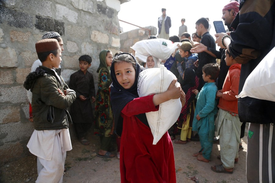 ISLAMABAD, March 19 (Xinhua) -- On a crisp spring morning, the sun cast its golden rays, painting the outskirts of Islamabad with a warm glow as it illuminated the scene of children frolicking joyfully on receiving gift bags from Chinese volunteers as a token of friendship and goodwill.