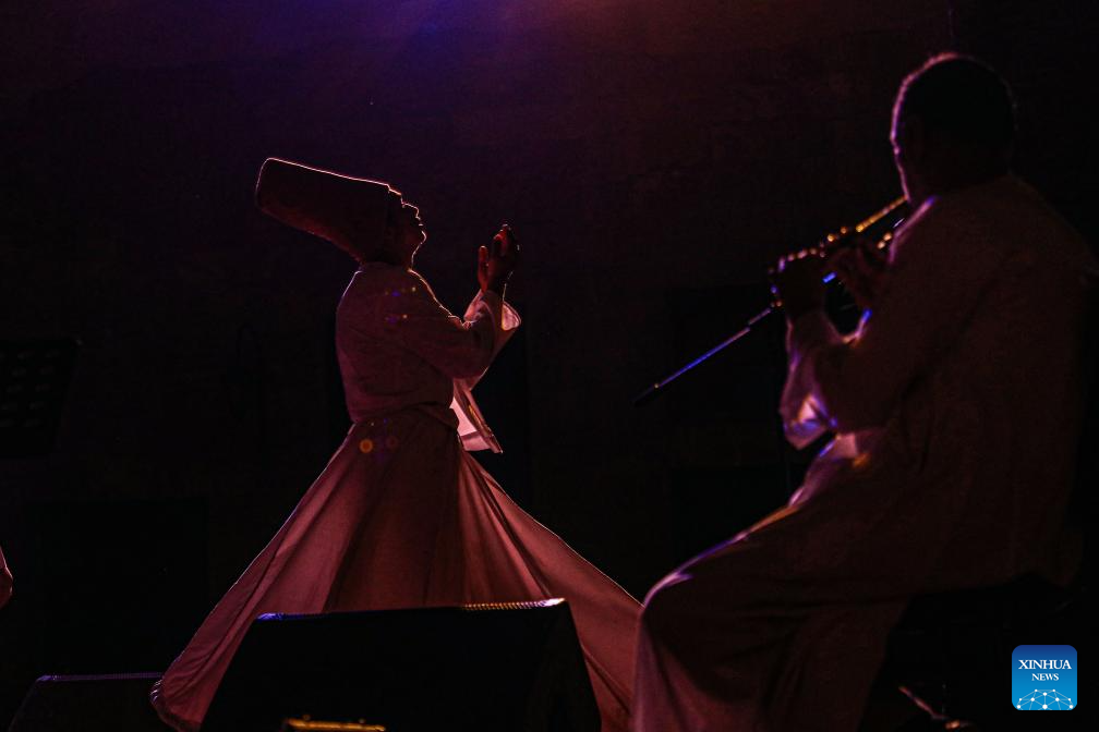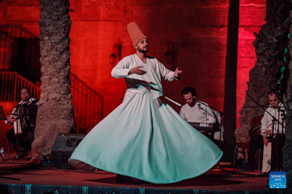 A dancer performs a Sufi dance at Prince Taz Palace during Ramadan in Cairo, Egypt, on March 19, 2024. (Xinhua/Ahmed Gomaa)