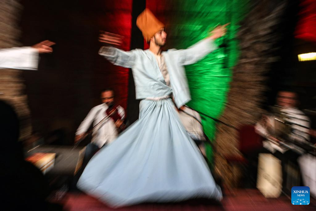 Dancers perform a Sufi dance at Prince Taz Palace during Ramadan in Cairo, Egypt, on March 19, 2024. (Xinhua/Ahmed Gomaa)