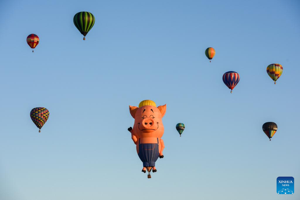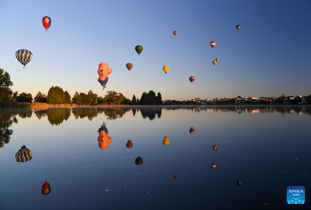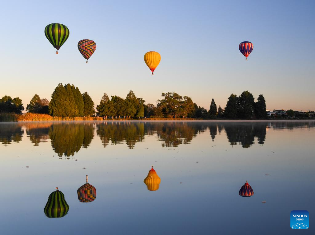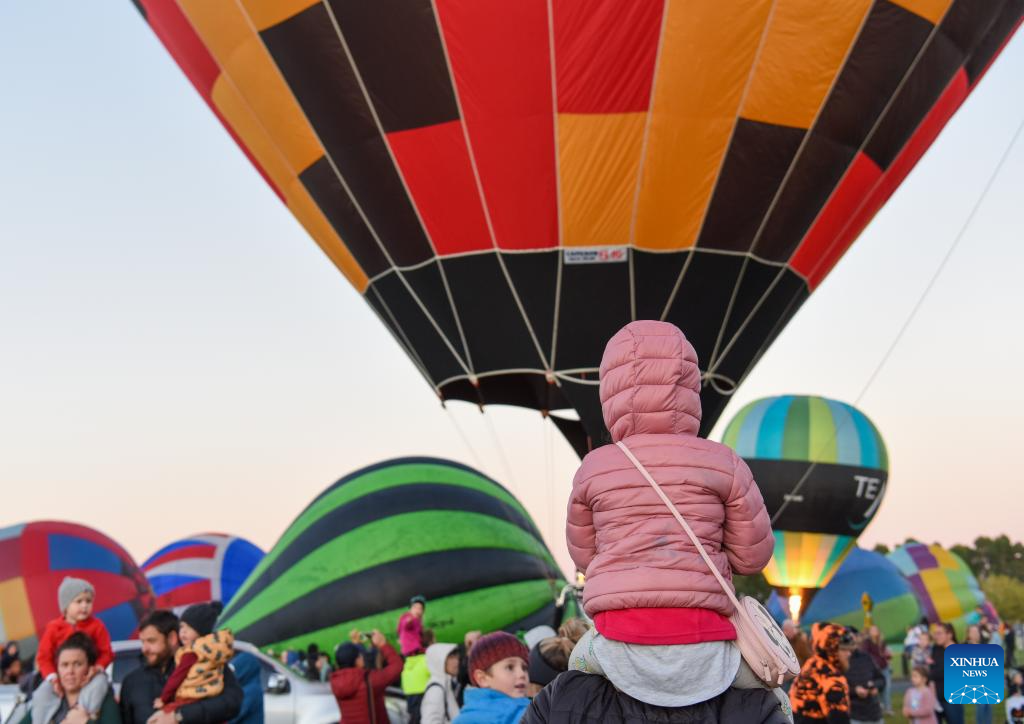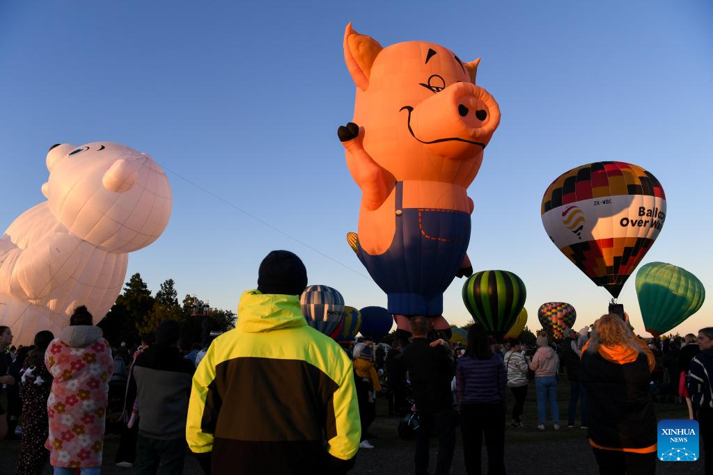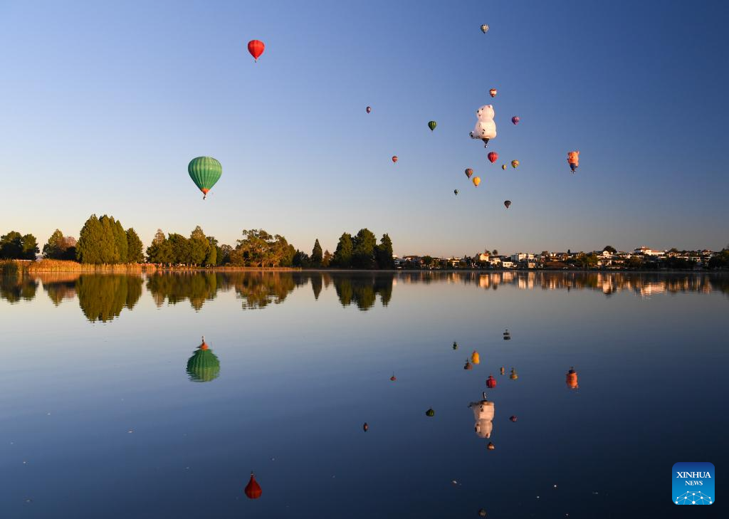 Hot-air balloons are seen during the Balloons Over Waikato Festival in Hamilton, New Zealand, March 20, 2024. The festival is held here from March 19 to 23 this year. (Xinhua/Guo Lei)