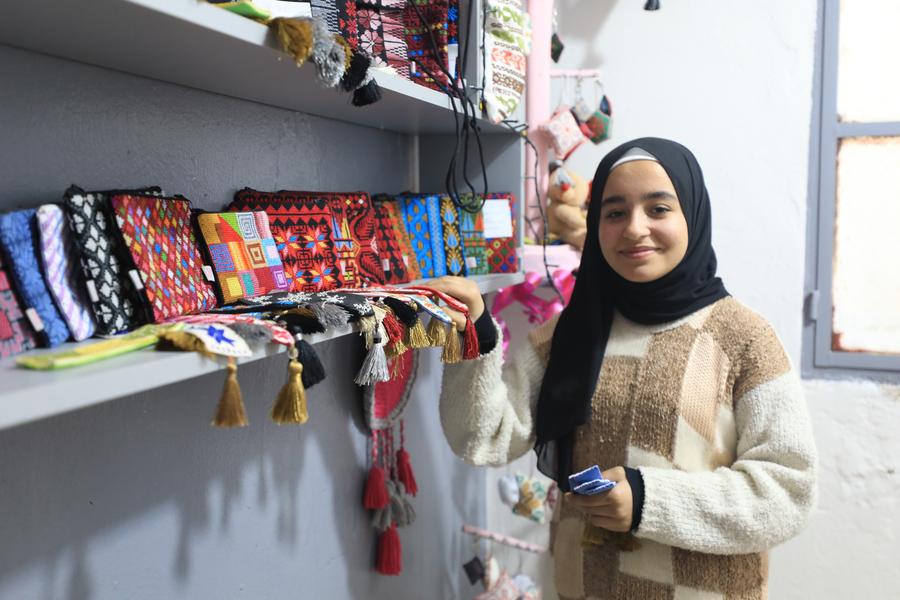 Zeinab Al Mokdad, 44, a mother of three, is the group's supervisor. In another room, she showed Xinhua the finished embroideries, including bookmarks, bags, dolls, clothes, and pillows, which take between three hours and 15 days to make.