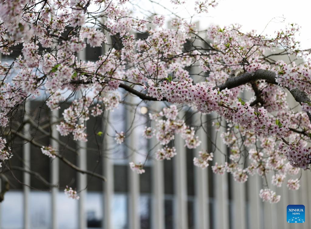 Cherry blossoms are pictured in London, Britain, March 20, 2024. (Xinhua/Li Ying)