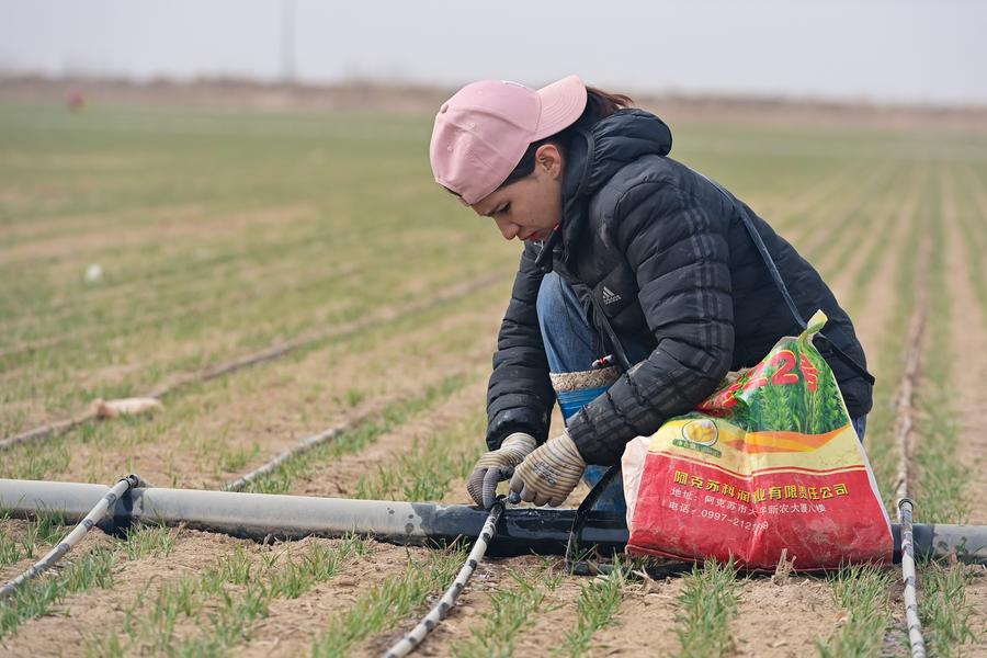 A farmer operates machine to sow seeds in a field in Tianhai Village of Liuyuan Township, Aksu Prefecture, northwest China's Xinjiang Uygur Autonomous Region, March 21, 2024. (Xinhua/Ding Lei)A farmer works in a field in Tianhai Village of Liuyuan Township, Aksu Prefecture, northwest China's Xinjiang Uygur Autonomous Region, March 21, 2024. (Xinhua/Ding Lei)A farmer checks the drip irrigation equipment in Ruifeng Village of Liuyuan Township, Aksu Prefecture, northwest China's Xinjiang Uygur Autonomous Region, March 21, 2024. (Xinhua/Ding Lei)A farmer checks the drip irrigation equipment in Ruifeng Village of Liuyuan Township, Aksu Prefecture, northwest China's Xinjiang Uygur Autonomous Region, March 21, 2024. (Xinhua/Ding Lei)A farmer operates machine to sow seeds in a field in Tianhai Village of Liuyuan Township, Aksu Prefecture, northwest China's Xinjiang Uygur Autonomous Region, March 21, 2024. (Xinhua/Ding Lei)A farmer checks the drip irrigation equipment in Ruifeng Village of Liuyuan Township, Aksu Prefecture, northwest China's Xinjiang Uygur Autonomous Region, March 21, 2024. (Xinhua/Ding Lei)■