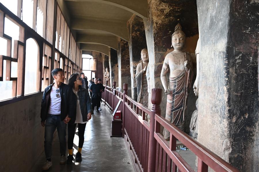 Tourists taste malatang at the ancient city of Tianshui in Qinzhou District of Tianshui City, northwest China's Gansu Province, March 20, 2024. (Xinhua/Ma Xiping)Tourists taste local snacks at the ancient city of Tianshui in Qinzhou District of Tianshui City, northwest China's Gansu Province, March 20, 2024. (Xinhua/Ma Xiping)Tourists visit the ancient city of Tianshui in Qinzhou District of Tianshui City, northwest China's Gansu Province, March 20, 2024. (Xinhua/Fan Peishen)Tourists pose for a photo at the ancient city of Tianshui in Qinzhou District of Tianshui City, northwest China's Gansu Province, March 20, 2024. (Xinhua/Ma Xiping)Tourists take a free ride at a scenic spot in Qinzhou District of Tianshui City, northwest China's Gansu Province, March 19, 2024. (Xinhua/Fan Peishen)Tourists watch a performance on a commercial street in Qinzhou District of Tianshui City, northwest China's Gansu Province, March 19, 2024. (Xinhua/Ma Xiping)Shehuo performers stage a show for tourists at the ancient city of Tianshui in Qinzhou District of Tianshui City, northwest China's Gansu Province, March 20, 2024. (Xinhua/Ma Xiping)Tourists visit the Maiji Mountain Grottoes in Maiji District of Tianshui City, northwest China's Gansu Province, March 20, 2024. (Xinhua/Fan Peishen)Tourists visit the Maiji Mountain Grottoes in Maiji District of Tianshui City, northwest China's Gansu Province, March 20, 2024. (Xinhua/Fan Peishen)An aerial drone photo taken on March 20, 2024 shows a scenic spot in Maiji District of Tianshui City, northwest China's Gansu Province. (Xinhua/Fan Peishen)■