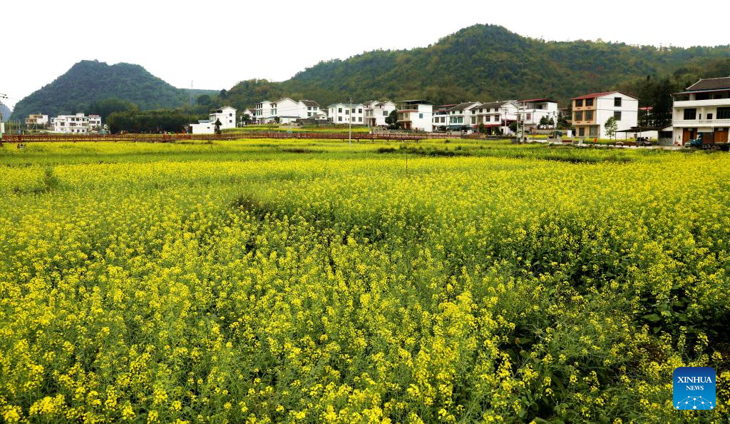 An aerial drone photo taken on March 19, 2024 shows a view of the Shimen Village in Luocheng Mulao Autonomous County, Hechi City of south China's Guangxi Zhuang Autonomous Region. (Photo by Liao Guangfu/Xinhua)