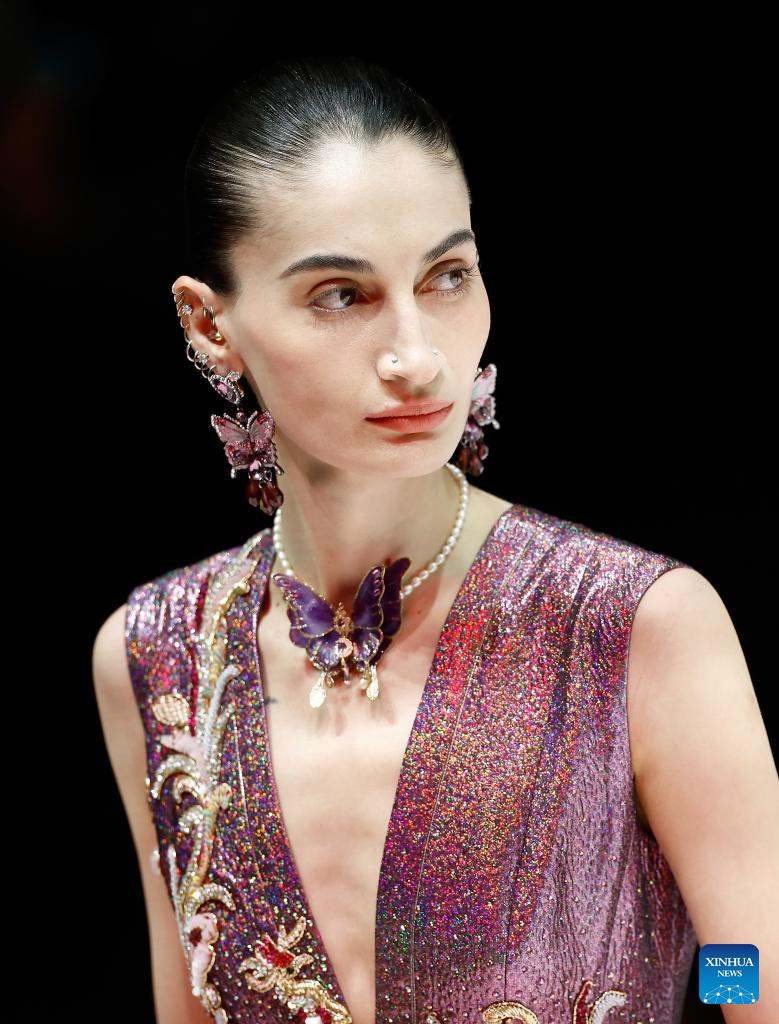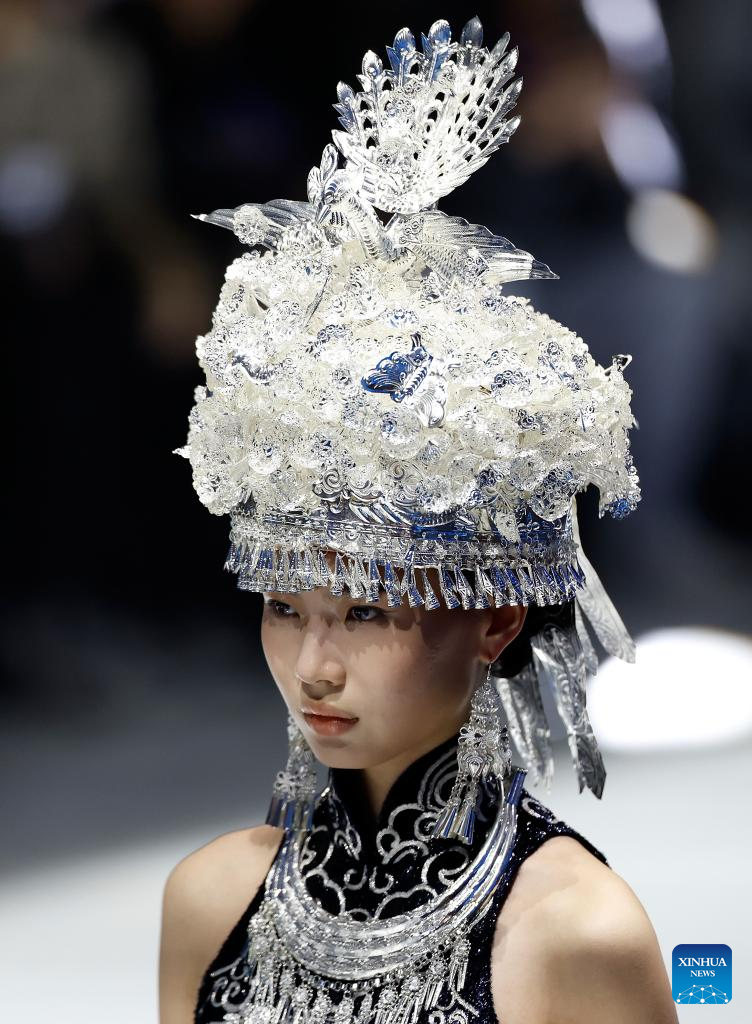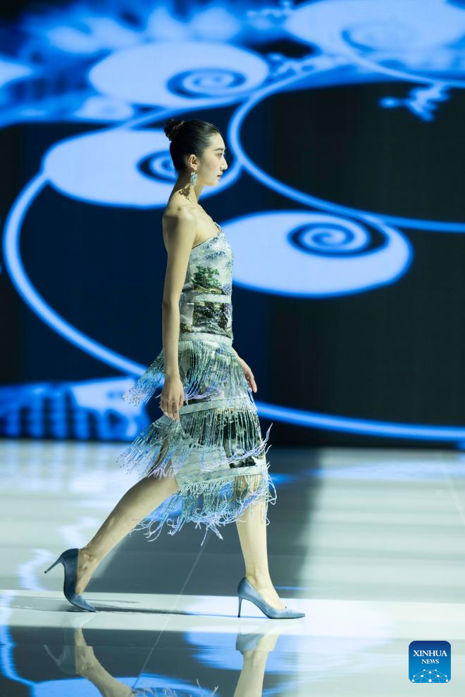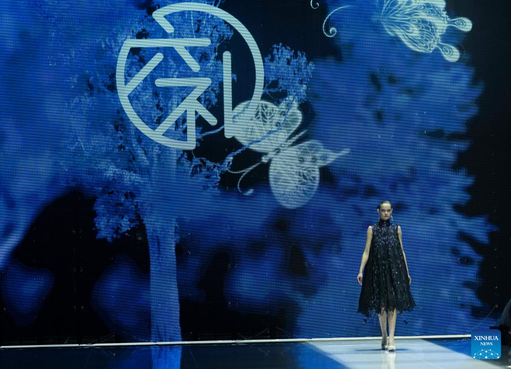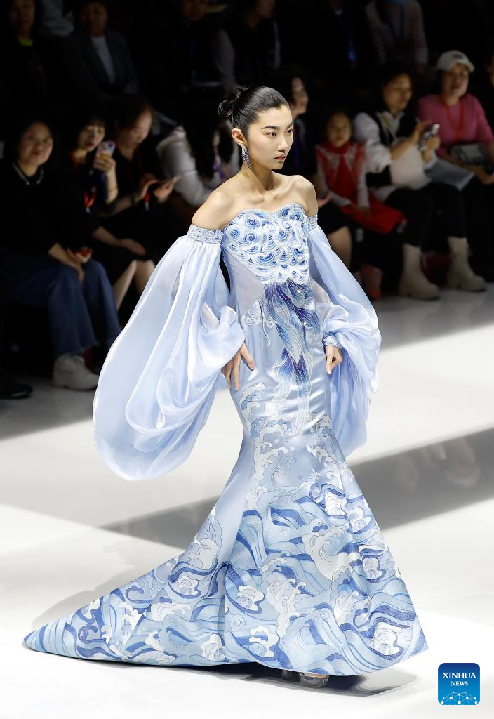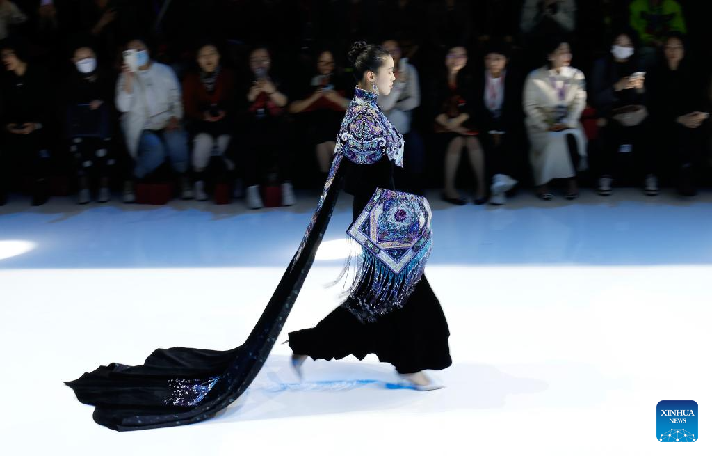 A model presents a creation of Loolayy during the China Fashion Week A/W 2024 in Beijing, capital of China, March 23, 2024. The China Fashion Week A/W 2024 kicked off on Saturday here, and will last until March 31. (Xinhua/Wang Lili)