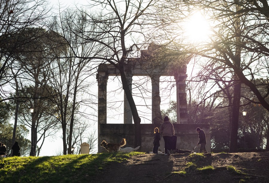People walk at Villa Borghese in Rome, Italy, Jan. 23, 2024. (Xinhua/Li Jing)