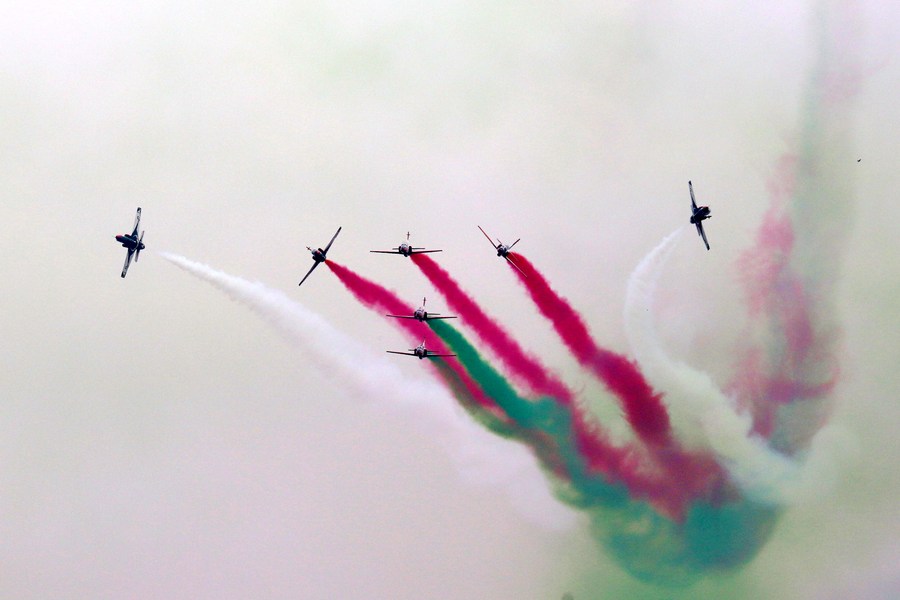 Jets perform during the Pakistan Day military parade in Islamabad, capital of Pakistan on March 23, 2024. (Xinhua/Ahmad Kamal)