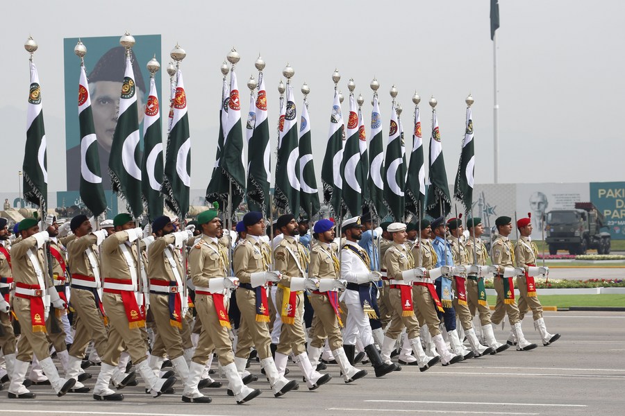 ISLAMABAD, March 24 (Xinhua) -- As the sleek silhouette of the JF-17 Thunder jet fighter streaked through the sky, its powerful engines roared in harmony with the beating hearts of hundreds of spectators gathering to witness the grandeur of the parade ceremony, held to commemorate the 84th Pakistan Day here on Saturday.