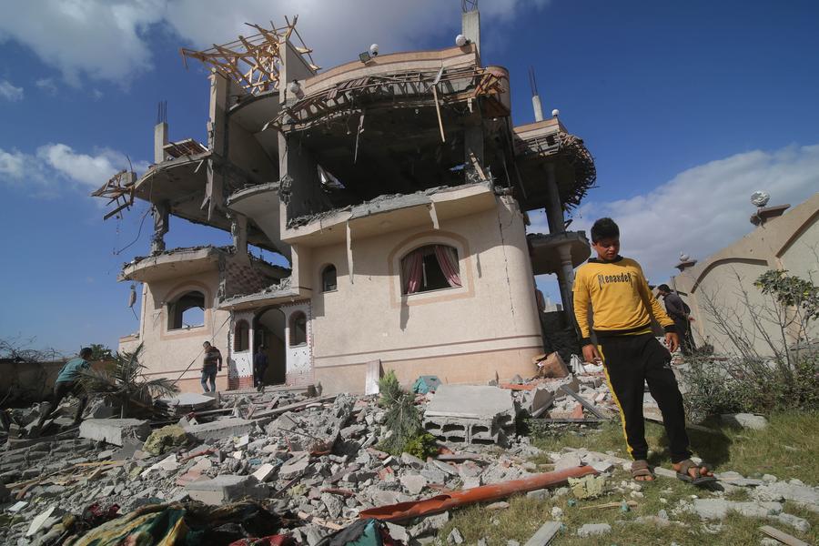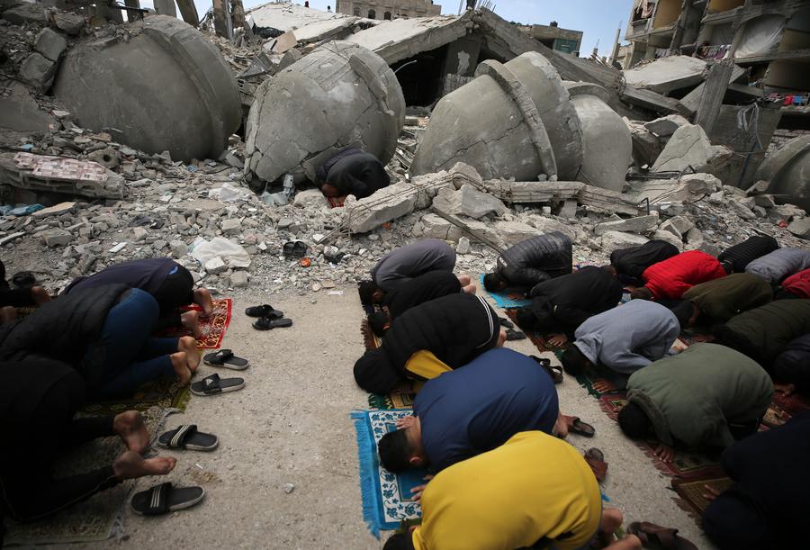 GAZA, March 24 (Xinhua) -- Amidst the debris of destroyed houses in the Gaza Strip, Nidal Abu Baraka, a 55-year-old Palestinian man, chose to break his daily Ramadan fast on the very ruins of his house with his family.