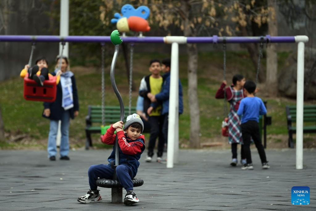 Children play at a park in Tehran, Iran, March 24, 2024. (Xinhua/Shadati)