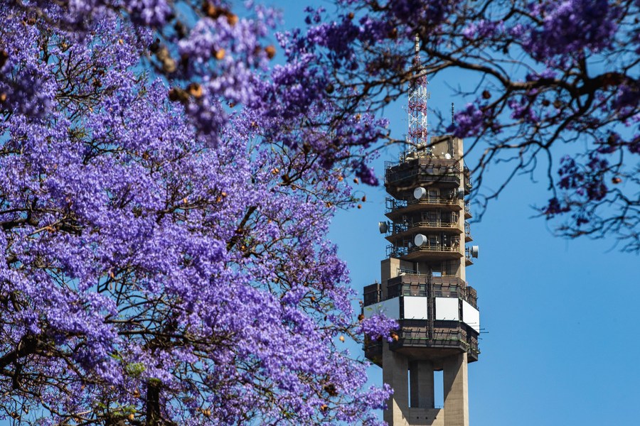 This photo taken on Oct. 13, 2023, shows a view featuring jacaranda trees in Pretoria, South Africa. (Xinhua/Zhang Yudong)