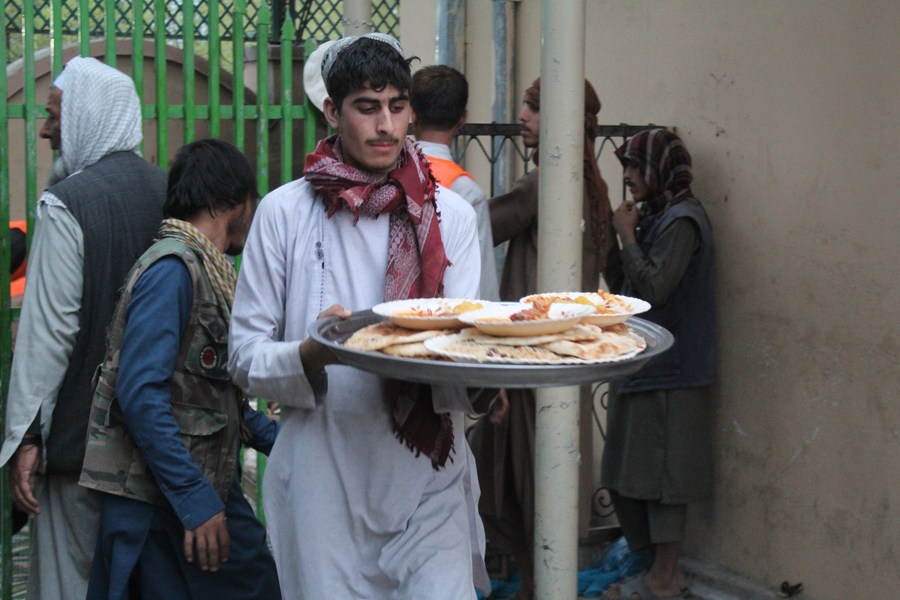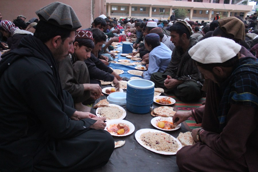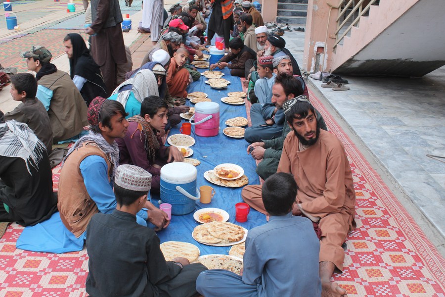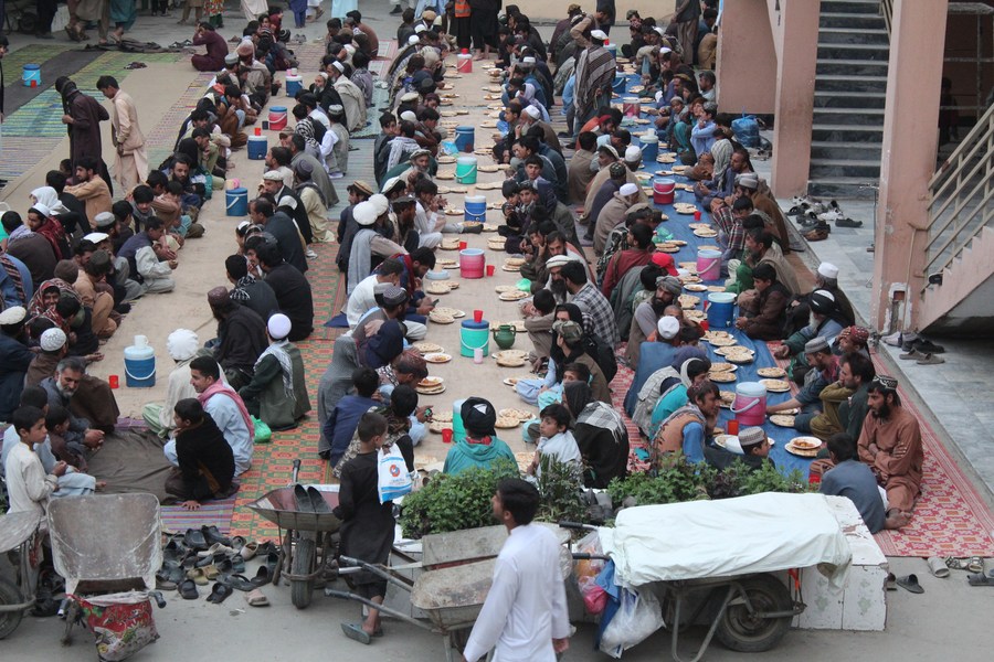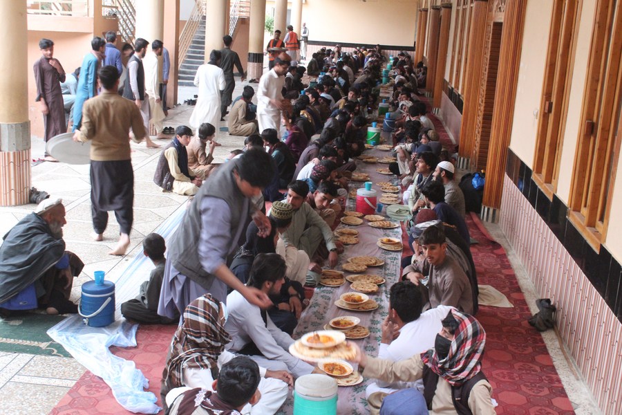 KABUL, March 25 (Xinhua) -- During the Islamic holy month of Ramadan, Afghans devoutly attend mosques, dedicating several hours to prayer and reflection. Following the breaking of the fast, rich people provide food for those less fortunate in Mehtarlam, the capital of east Afghanistan's Laghman Province, embodying the spirit of charity and compassion ingrained in the holy month.