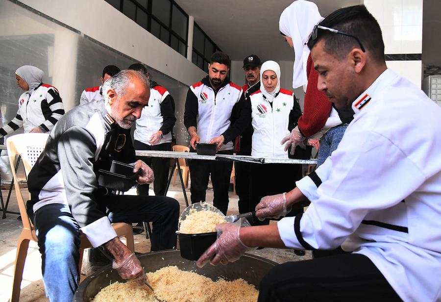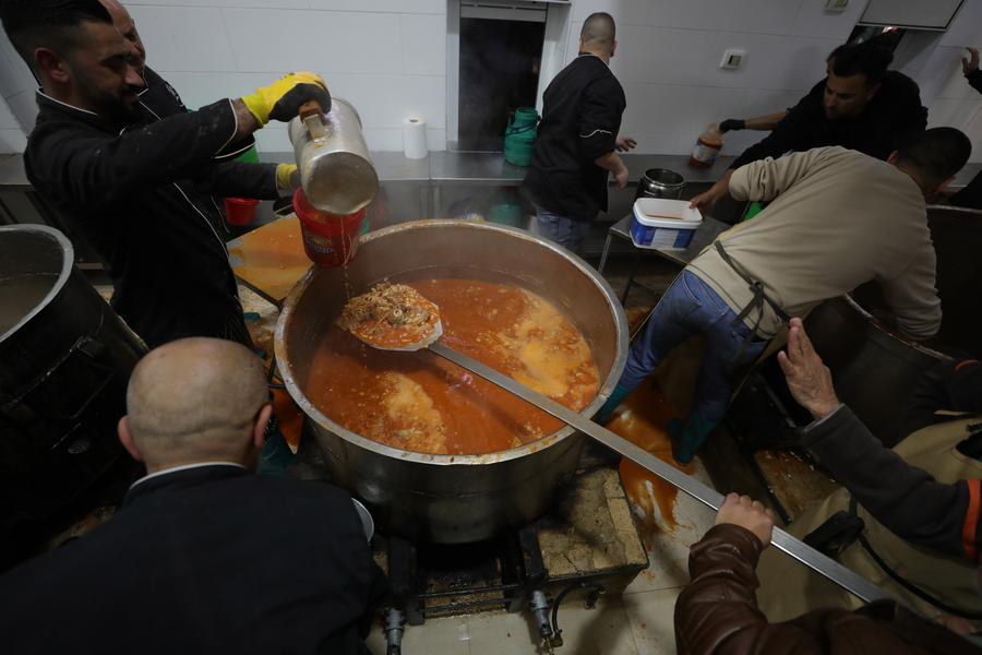 Young volunteers from the team "Youth Impression of Syria" prepare free meals for the poor on the outskirts of Damascus, Syria, on March 22, 2024. (Photo by Ammar Safarjalani/Xinhua)Photo taken on March 25, 2024 shows a child waiting for the collective Iftar in the Adhamiyah neighborhood in Baghdad, Iraq. (Xinhua/Khalil Dawood)A man gets free food during Ramadan in Baghdad, Iraq, on March 25, 2024. (Xinhua/Khalil Dawood)Palestinian cooks prepare charitable meals during Ramadan in the West Bank city of Hebron, on March 20, 2024. (Photo by Mamoun Wazwaz/Xinhua)The staff of a local charity organization is providing free meals to local low-income people and those in need in Tunis, Tunisia on March 23, 2024. (Photo by Adel Ezzine/Xinhua) ■