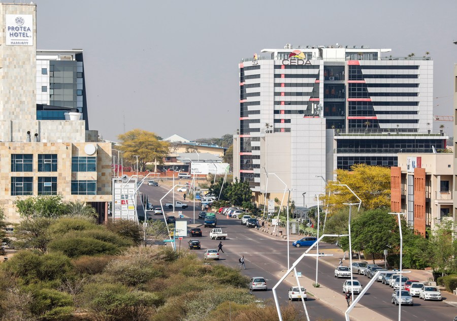 This photo taken on Sept. 11, 2023, shows a view of the Central Business District in Gaborone, Botswana. (Xinhua/Li Yahui)