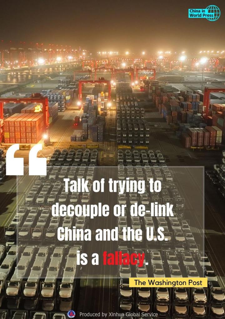 Talk of trying to decouple or de-link China and the U.S. is a fallacy. Even if the two economies could be separated, the result would be disastrous for both, according to a Washington Post editorial.