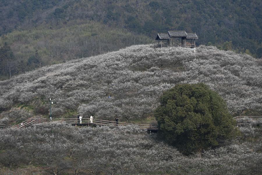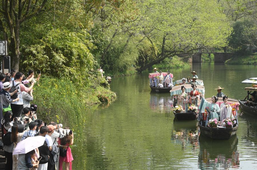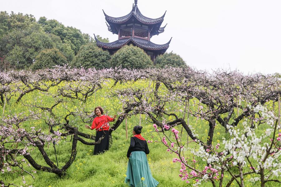 An aerial drone photo taken on March 27, 2024 shows farmers picking spring tea leaves at a tea garden on Gaoting Mountain in Shangcheng District of Hangzhou, east China's Zhejiang Province. (Xinhua/Jiang Han)Tourists pose for photos amid blooming cole flowers in Balidian Town of Wuxing District in Huzhou, east China's Zhejiang Province, March 30, 2024. (Xinhua/Weng Xinyang)Marathon competitors run past peach gardens in Linjia Village of Fenghua District in Ningbo, east China's Zhejiang Province, March 24, 2024. (Xinhua/Huang Zongzhi)Tourists visit Baidi causeway of the West Lake scenic area in Hangzhou, east China's Zhejiang province, March 26, 2024. (Xinhua/Huang Zongzhi)This photo taken on March 26, 2024 shows blooming cole flowers in a field in Xinwei Village of Qiantang District in Hangzhou, east China's Zhejiang Province. (Xinhua/Jiang Han)Tourists walk in Gaoting Mountain scenic area in Shangcheng District of Hangzhou, east China's Zhejiang Province, March 27, 2024. (Xinhua/Jiang Han)An aerial drone photo taken on March 20, 2024 shows villagers performing dragon dance to celebrate the harvest of spring tea leaves in Bashan Village of Fuyang District in Hangzhou, east China's Zhejiang Province. (Xinhua/Xu Yu)Performers in traditional costumes take a boat parade during the Huazhao Festival celebrations in Xixi Wetland in Hangzhou, east China's Zhejiang Province, March 24, 2024. (Xinhua/Weng Xinyang)A citizen runs on a greenway for exercise in Binjiang District in Hangzhou, east China's Zhejiang Province, March 29, 2024. (Xinhua/Jiang Han)Marathon competitors run past peach gardens in Linjia Village of Fenghua District in Ningbo, east China's Zhejiang Province, March 24, 2024. (Xinhua/Huang Zongzhi)Tourists view plum blossoms at Yingzhou plum garden in Wuxing District of Huzhou, east China's Zhejiang Province, Feb. 27, 2024. (Xinhua/Huang Zongzhi)An aerial drone photo taken on March 27, 2024 shows a view of cherry blossoms and tea gardens on Gaoting Mountain in Shangcheng District of Hangzhou, east China's Zhejiang Province. (Xinhua/Jiang Han)An aerial drone photo taken on March 29, 2024 shows cherry blossoms along a greenway in Binjiang District in Hangzhou, east China's Zhejiang Province. (Xinhua/Jiang Han)Performers in traditional costumes take a boat parade during the Huazhao Festival celebrations in Xixi Wetland in Hangzhou, east China's Zhejiang Province, March 24, 2024. (Xinhua/Weng Xinyang)An aerial drone photo taken on March 27, 2024 shows tourists viewing cherry blossoms in Zhangzhen Town of Shangyu District in Shaoxing, east China's Zhejiang Province. (Xinhua/Weng Xinyang)Tourists have fun at Chengshangou scenic area in Heping Town of Changxing County in Huzhou, east China's Zhejiang Province, March 26, 2024. (Xinhua/Xu Yu)Tourists view cole flowers in a field in Qiantan Town of Jiande City, east China's Zhejiang Province, March 21, 2024. (Xinhua/Xu Yu)An aerial drone photo taken on March 29, 2024 shows peach blossoms in Beihe Village of Yaozhuang Town in Jiashan County of Jiaxing, east China's Zhejiang Province. (Xinhua/Xu Yu)Blooming peach blossoms and cole flowers are pictured in Balidian Town of Wuxing District in Huzhou, east China's Zhejiang Province, March 30, 2024. (Xinhua/Weng Xinyang)An aerial drone photo taken on March 27, 2024 shows a farmer picking spring tea leaves at a tea garden on Gaoting Mountain in Shangcheng District of Hangzhou, east China's Zhejiang Province. (Xinhua/Jiang Han)■