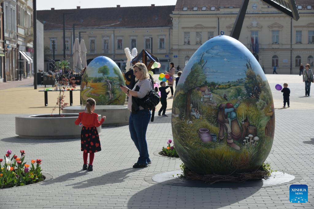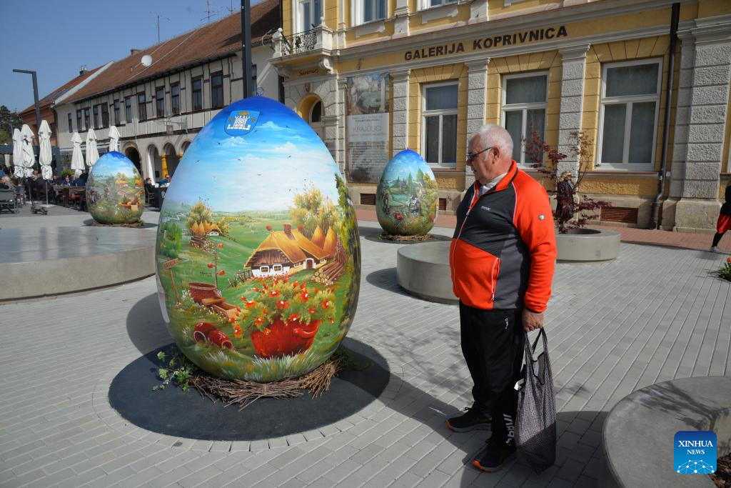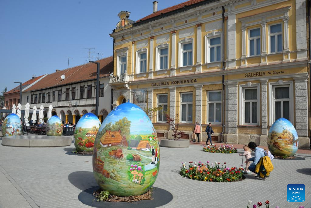 On March 14, the Tourist Board of Koprivnica-Krizevci County unveiled its annual exhibition of large decorated Easter eggs on the city's center square, and the Easter eggs, 2.05-meter high and 1.5-meter wide each, are believed to be the largest in Croatia.