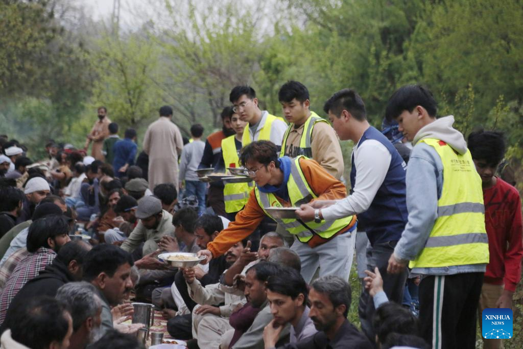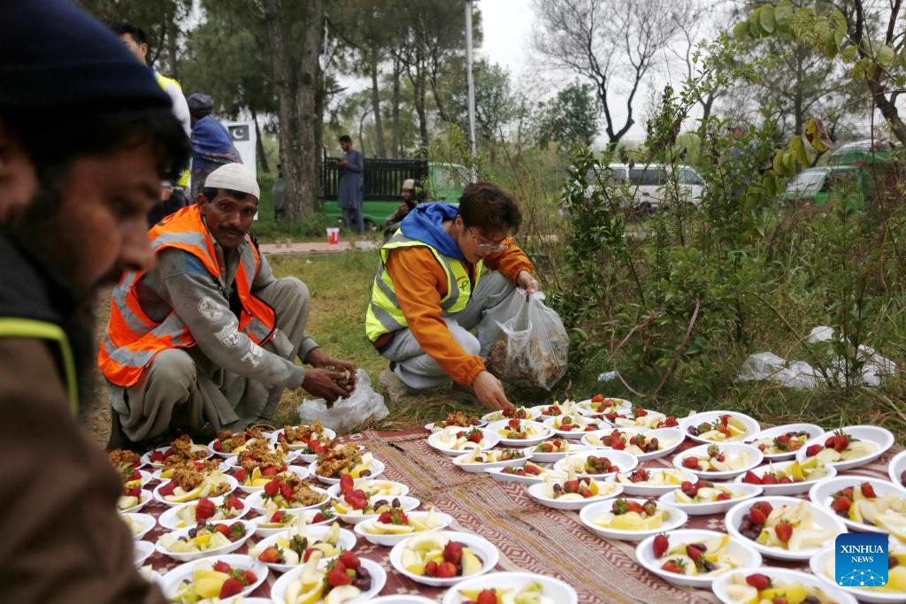 ISLAMABAD, March 31 (Xinhua) -- Raising his hands in prayer according to Muslim traditions while breaking his fast at dusk in the Islamic holy month of Ramadan, Muhammad Rashid made a wish for the health and happiness of Chinese volunteers serving food to Pakistanis at a makeshift dining place on the outskirts of the Pakistani capital.