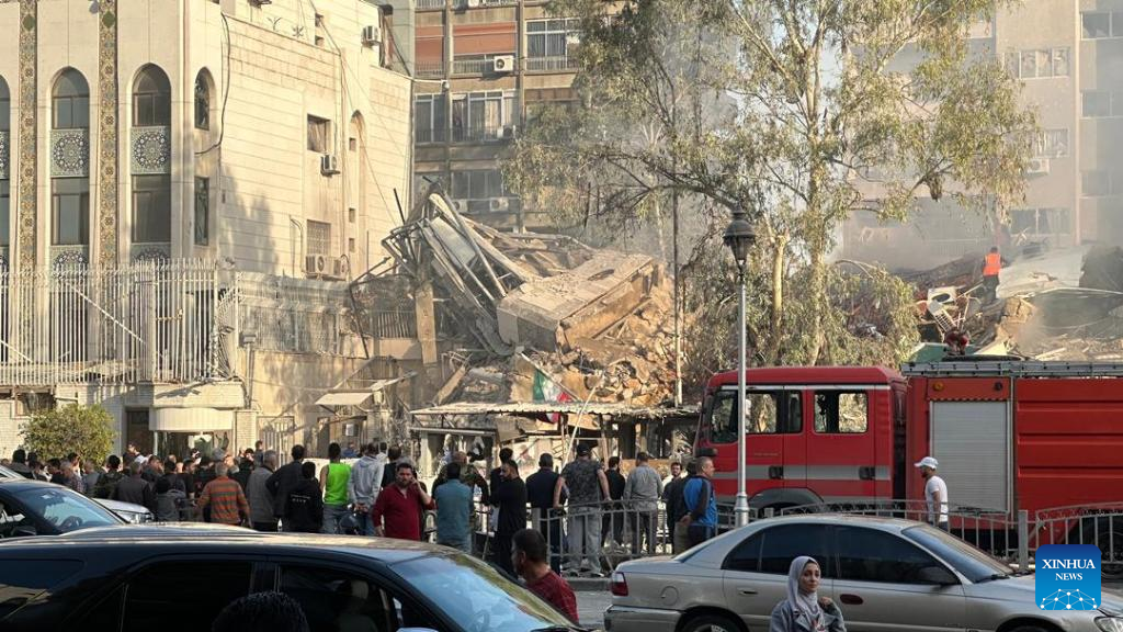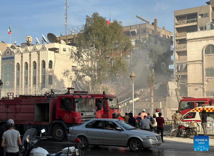 Syria's state news agency, SANA, has reported that the Israeli attack resulted in significant destruction to the Iranian consulate building and neighboring structures. (Photo by Hummam Sheikh Ali/Xinhua)