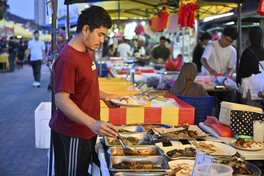 People buy food at a market during the Islamic holy month of Ramadan in Kuala Lumpur, Malaysia, April 1, 2024. (Xinhua/Cheng Yiheng)