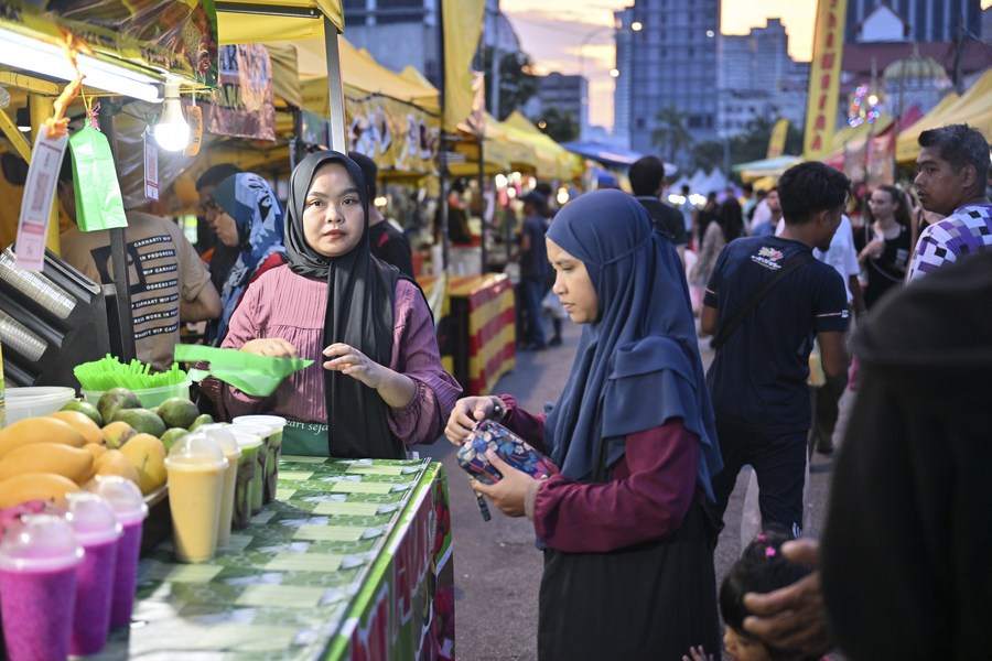 People shop at a market during the Islamic holy month of Ramadan in Kuala Lumpur, Malaysia, April 1, 2024. (Xinhua/Cheng Yiheng)■