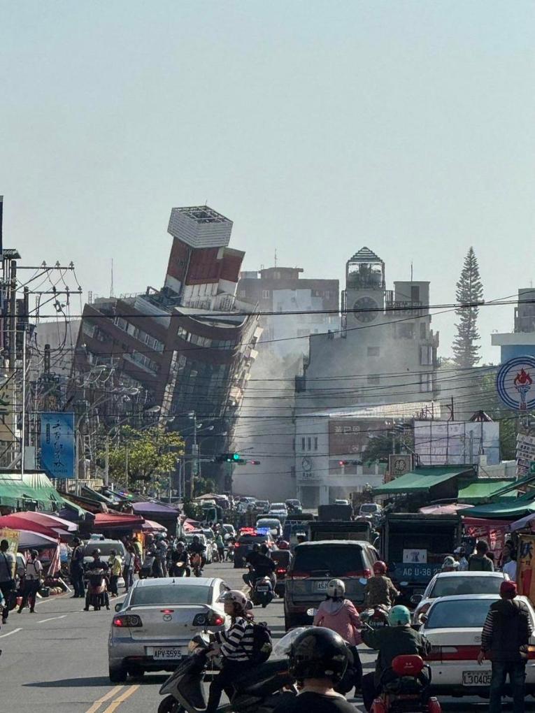 Multiple residential buildings partially collapsed in Hualien, forcing the evacuation of hundreds of residents. Falling rocks were also reported in hilly areas.