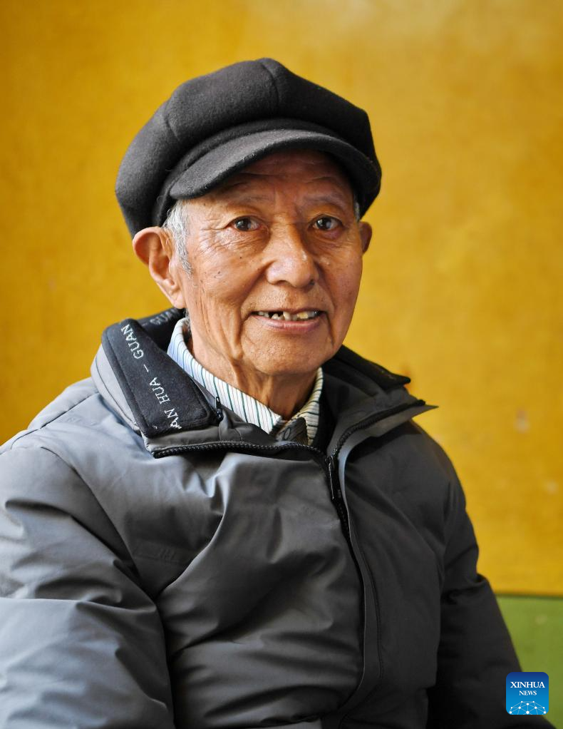 This photo taken on March 27, 2024 shows a portrait of Lozang Gonpo who had been a serf before the democratic reform that ended feudal serfdom in Xizang in 1959, in Lhasa, southwest China's Xizang Autonomous Region. (Xinhua/Zhang Rufeng)